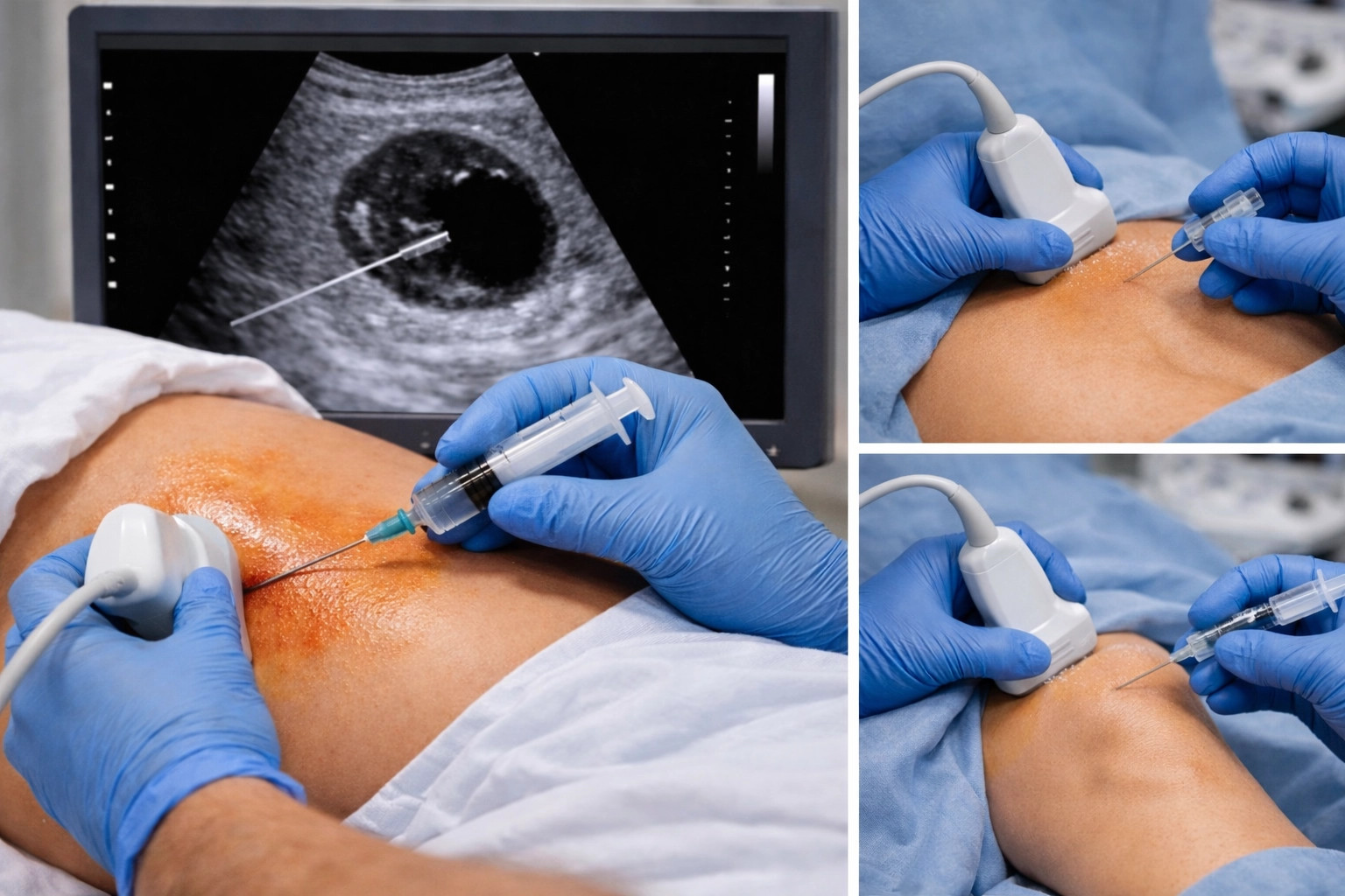 Targeted injections with mesocaine and Dopa-Medrol – precise administration of medication into the affected area under ultrasound guidance.